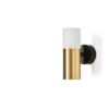 Aplique de pared elegante con tulipa cilíndrica de alabastro natural y cuerpo de acero. Disponible en dos acabados: negro mate o oro mate. Una pieza de iluminación sutil con fuerte presencia estética.