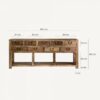La consola de madera reciclada con ocho cajones es una pieza versátil que aporta carácter y calidez a cualquier espacio. Fabricada con madera recuperada, cada detalle refleja la autenticidad de los materiales naturales, destacando vetas y texturas únicas. Su diseño rústico e inspiración vintage la convierte en un mueble con historia y encanto especial.
