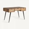 El Escritorio de Madera de Mango con Cajones y Patas Metálicas es una pieza versátil y con carácter, ideal para espacios de trabajo contemporáneos o rincones creativos en casa. Su estructura está fabricada íntegramente en madera de mango maciza, una madera de gran durabilidad y vetas únicas que aportan calidez y textura al ambiente. Cuenta con tres cajones espaciosos que ofrecen almacenamiento funcional para mantener todo en orden: desde material de oficina hasta documentos importantes. Las patas metálicas negras, finas y estilizadas, aportan ligereza visual y un contraste industrial muy actual. Su diseño compacto lo hace perfecto para despachos pequeños o espacios multifuncionales. Un mueble que equilibra funcionalidad, estética y calidad artesanal.