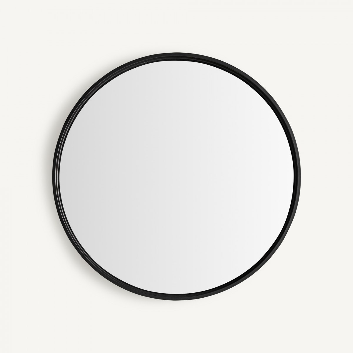 Este espejo redondo presenta una estructura única que combina un marco exterior de metal negro con un elegante detalle de madera en el interior. El contraste entre los materiales le otorga un diseño sofisticado y moderno, perfecto para destacar en cualquier espacio. El metal aporta una estética industrial y robusta, mientras que la madera añade un toque cálido y natural que equilibra el diseño. Este espejo es ideal para salones, entradas o dormitorios que busquen un elemento decorativo funcional y con carácter. Su estilo versátil se adapta tanto a interiores contemporáneos como a espacios con influencias rústicas o industriales, convirtiéndose en un complemento decorativo imprescindible.