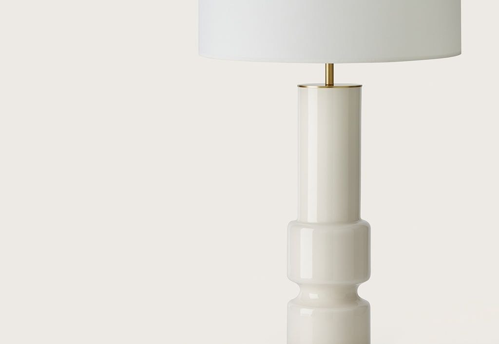 Lusa es una lámpara de mesa decorativa que destaca por la pureza de sus líneas y el equilibrio visual entre materiales nobles como el metal y el cristal. Su silueta vertical, compuesta por un cuerpo de vidrio en dos secciones sobre una base metálica redonda, genera una presencia sobria y contemporánea que se adapta fácilmente a entornos residenciales o contract.