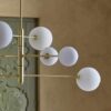 Las tulipas esféricas están disponibles en dos versiones: cristal opal, que proporciona una iluminación difusa y suave, ideal para crear ambientes relajantes; o cristal transparente, que realza la luminosidad y aporta una estética más ligera y sofisticada. Atom no solo es una fuente de luz, sino una auténtica pieza decorativa que transforma cualquier estancia.