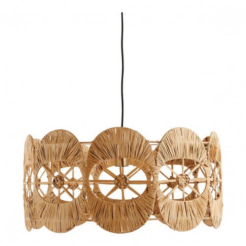 Descubre la armonía entre arte y naturaleza con esta lámpara de techo de gran formato, confeccionada a mano con fibras naturales trenzadas. Su estructura abierta de formas circulares entrelazadas genera un interesante juego de luces y sombras, creando una atmósfera acogedora en salones, comedores o dormitorios. Cada detalle de su diseño refleja el trabajo artesanal y un gusto por lo auténtico, con una estética orgánica que combina a la perfección con interiores de estilo mediterráneo, bohemio o contemporáneo. Su presencia decorativa no pasa desapercibida, y su ligereza visual permite integrarla con elegancia en múltiples ambientes. Aporta textura y personalidad a tu hogar con esta pieza única que celebra lo natural.