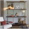 Esta sofisticada librería combina líneas minimalistas con materiales nobles para ofrecer una pieza de mobiliario funcional y altamente decorativa. Su estructura está formada por una fina y resistente base metálica en tono dorado satinado, que aporta un toque de lujo sin resultar recargado. Los estantes están fabricados en madera maciza con un cálido acabado en color nogal, ideal para destacar objetos decorativos, libros o incluso plantas. Gracias a su diseño abierto, esta librería aporta ligereza visual y permite separar ambientes sin bloquear la luz ni recargar el espacio. Su estilo versátil la convierte en una excelente opción tanto para el salón como para un despacho moderno. Es perfecta para quienes buscan una pieza elegante, funcional y duradera para completar la decoración de interiores de alto nivel.