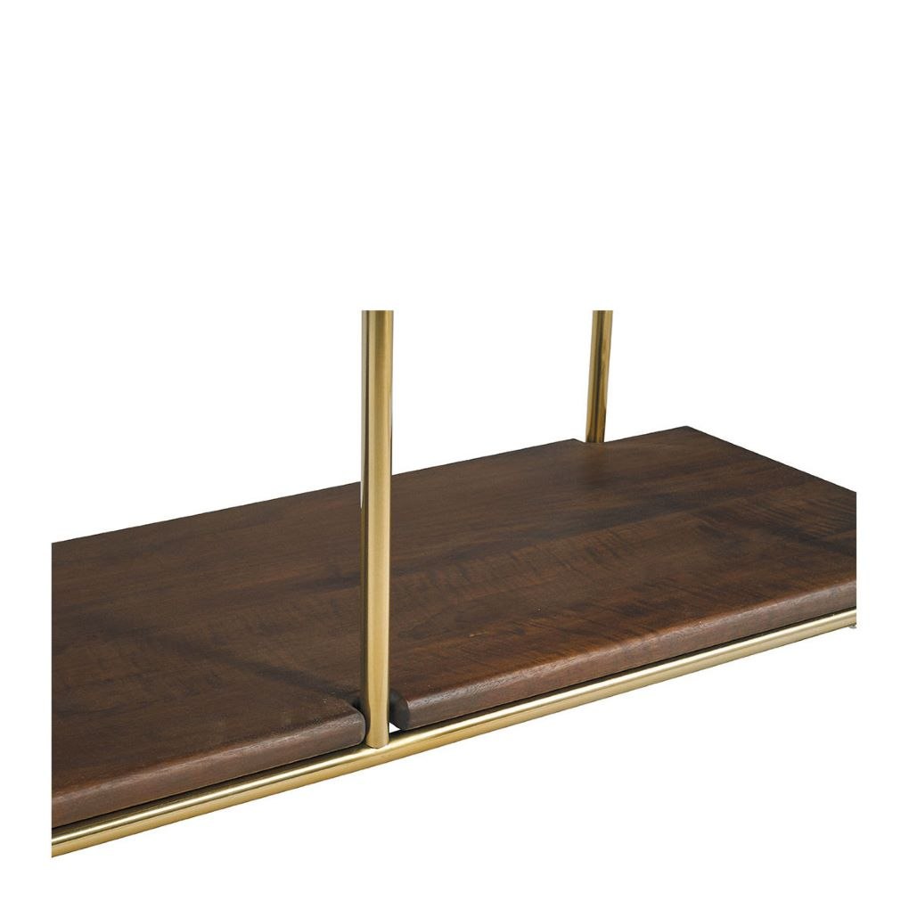 Librería de Madera Acabado Nogal con Estructura Metálica Dorada