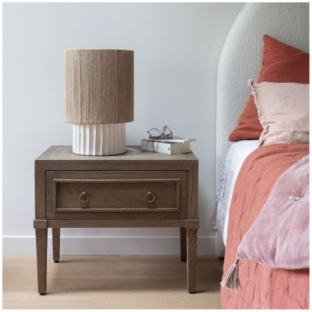 Fabricada en madera de roble, esta mesita de noche combina durabilidad y diseño refinado. Su estructura robusta resalta la belleza natural de la madera con un acabado cálido y elegante. El amplio cajón proporciona almacenamiento ideal para mantener organizados pequeños objetos personales, mientras que los tiradores en anillo dorado aportan un detalle cómodo. Las patas altas y esbeltas ofrecen estabilidad y ligereza visual, convirtiéndola en una pieza versátil que encaja perfectamente en espacios de estilo clásico o contemporáneo. Perfecta para complementar la decoración del dormitorio con funcionalidad y un toque de distinción.