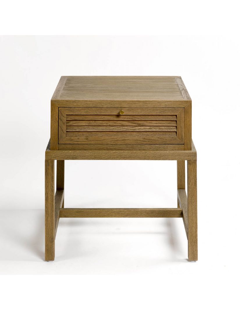 Mesita de Noche de Roble Natural con Cajón de Persianilla