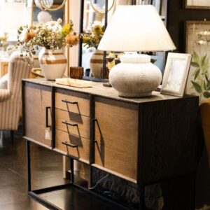 Aparador de Roble con Puertas en Espiga y Base Metálica