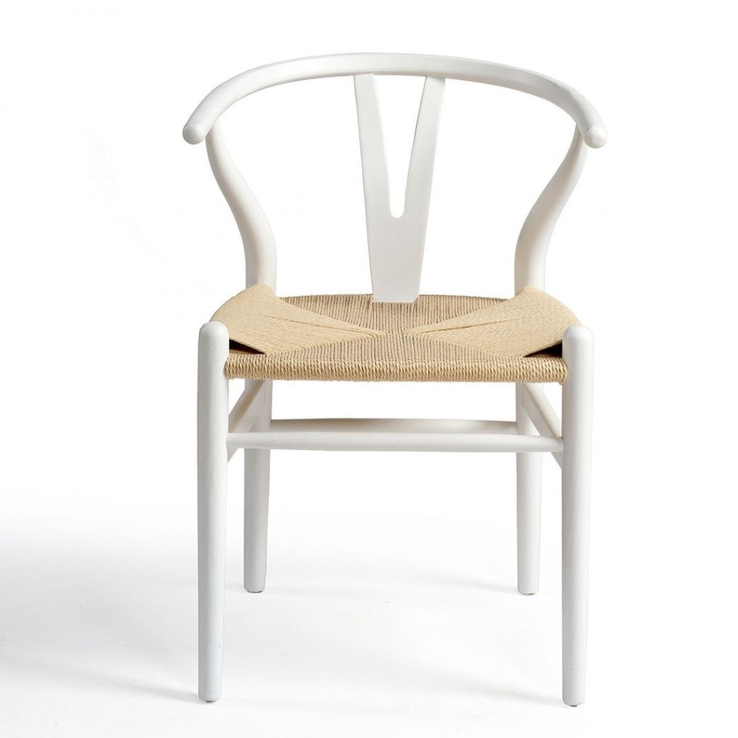 Silla de fresno en color blanco con asiento de enea trenzada a mano. Diseño elegante y funcional, ideal para comedores y espacios con estilo natural y sofisticado.