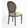 Elegante silla de madera de roble envejecido con respaldo de rejilla natural y asiento tapizado en lino. Su diseño refinado y sus detalles tallados evocan el estilo clásico francés, ideal para aportar un toque sofisticado a cualquier espacio.