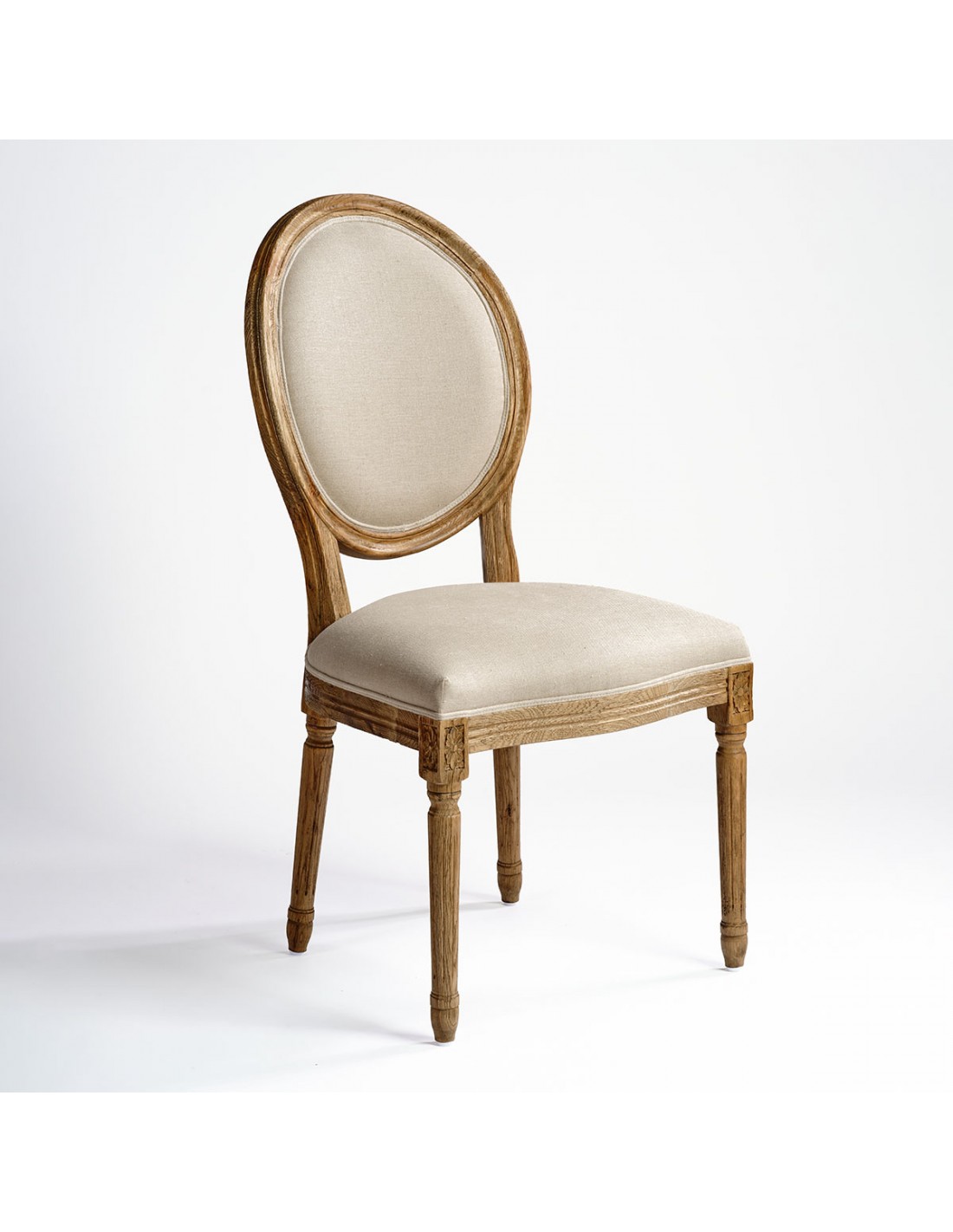 Esta silla de roble y lino tapizado combina un diseño elegante con materiales de alta calidad para brindar confort y estilo a tu hogar. Su estructura de madera de roble maciza garantiza resistencia y durabilidad, mientras que el asiento y respaldo tapizados en lino ofrecen una sensación cálida y acogedora. El respaldo ovalado realza su estética clásica, acompañado de delicadas tallas en las patas que refuerzan su encanto atemporal. Perfecta para comedores, salas o espacios con decoración de estilo vintage o rústico, esta silla es la opción ideal para quienes buscan funcionalidad sin sacrificar la belleza.