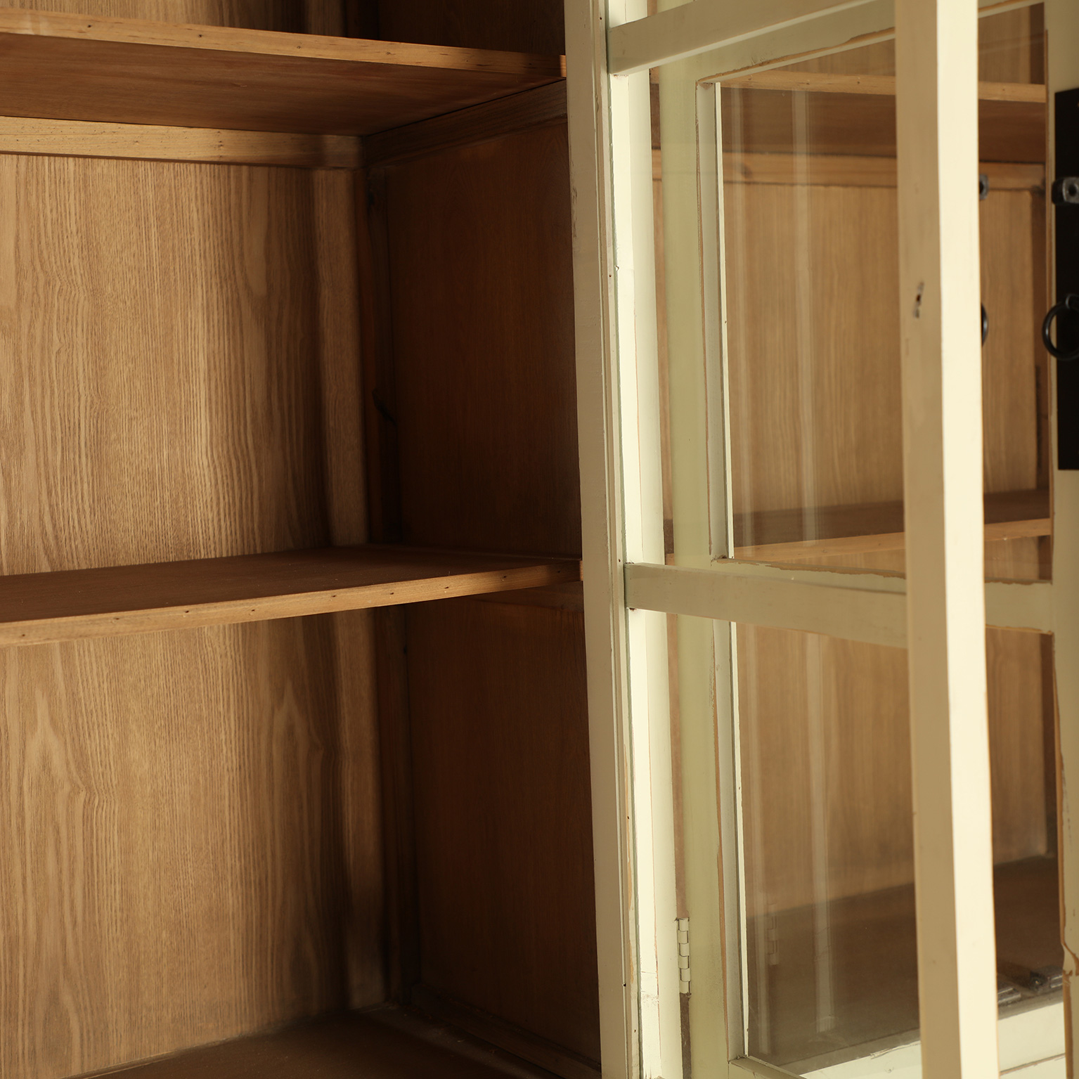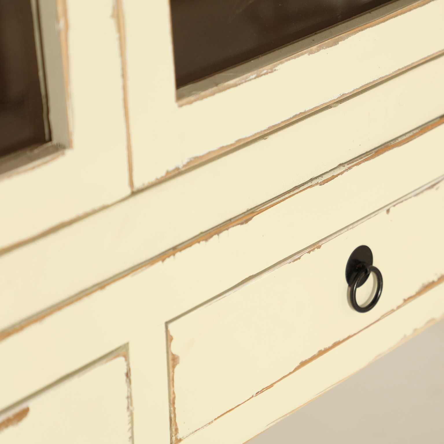 • Vitrina realizada en madera de olmo, pieza que combina el blanco decapado con el natural en su interior, tiene un estilo provenzal, de inspiración rústica, combinando tonalidades claras, creando un ambiente acogedor y ligero, es una vitrina con un diseño versátil, ya que la podemos colocar en el comedor como pieza de almacenaje, pero también en el salón a modo de librería.