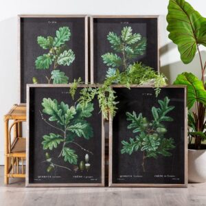 Set de Cuatro Cuadros Ramas y Moldura en Negro