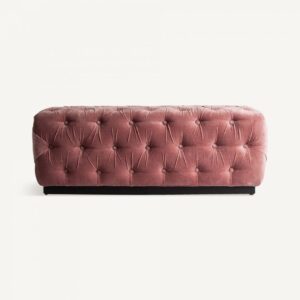 Pie de Cama Tapizado en Terciopelo Rosa con Diseño Capitoné